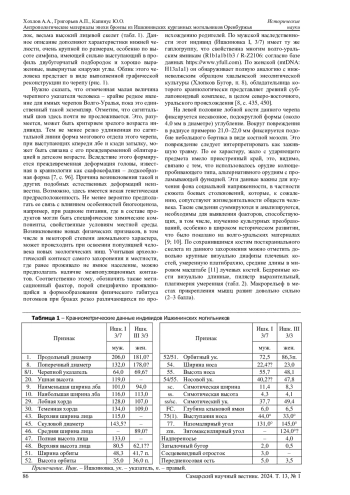Статья: АНТРОПОЛОГИЧЕСКИЕ МАТЕРИАЛЫ ЭПОХИ БРОНЗЫ ИЗ ИШКИНИНСКИХ КУРГАННЫХ МОГИЛЬНИКОВ ОРЕНБУРЖЬЯ (2024)