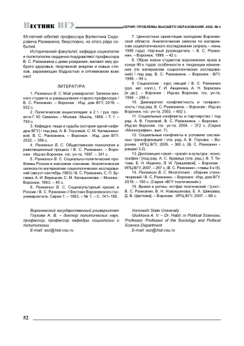 12. Социальные конфликты в условиях системных трансформаций / отв. ред. А. В. Глухова. - Воронеж : ИПЦ ВГУ, 2005. - 360 с. (В. С. Рахманин -раздел 3.2).