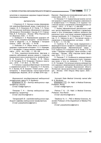 Журнал: ВЕСТНИК ВОРОНЕЖСКОГО ГОСУДАРСТВЕННОГО УНИВЕРСИТЕТА. СЕРИЯ: ПРОБЛЕМЫ ВЫСШЕГО ОБРАЗОВАНИЯ