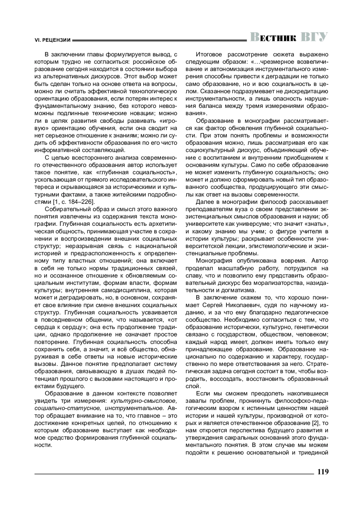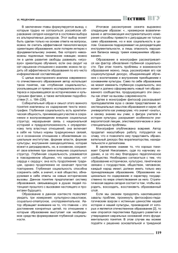 Образование в монографии рассматривается как фактор обновления глубинной социальности. При этом понять проблемы и возможности образования можно, лишь рассматривая его как социокультурный дискурс, объединяющий обучение с воспитанием и внутренним приобщением к основаниям культуры. Само по себе образование не может изменить глубинную социальность; оно может и должно сформировать новый тип образованного сообщества, продуцирующего эти смыслы как ответ на вызовы современности.