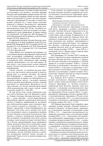 Статья: ИСТОРИЯ СТАНОВЛЕНИЯ И РАЗВИТИЯ МЕТОДОВ ОБУЧЕНИЯ В БИОЛОГИЧЕСКОМ ОБРАЗОВАНИИ ШКОЛЬНИКОВ (ДО XX СТОЛЕТИЯ) (2024)