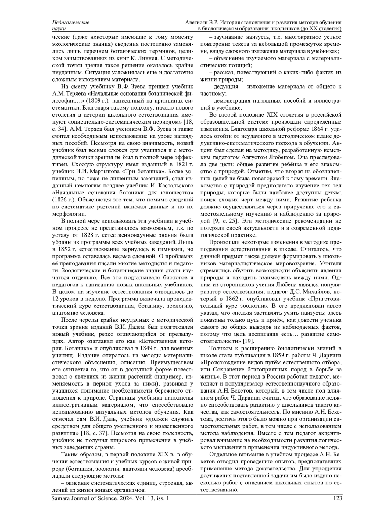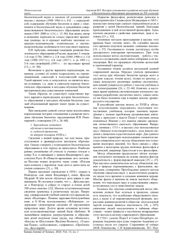 АВЕТИСЯН В. Р. ИСТОРИЯ СТАНОВЛЕНИЯ И РАЗВИТИЯ МЕТОДОВ ОБУЧЕНИЯ В БИОЛОГИЧЕСКОМ ОБРАЗОВАНИИ ШКОЛЬНИКОВ (ДО XX СТОЛЕТИЯ) // САМАРСКИЙ НАУЧНЫЙ ВЕСТНИК. 2024. ТОМ 13, № 1