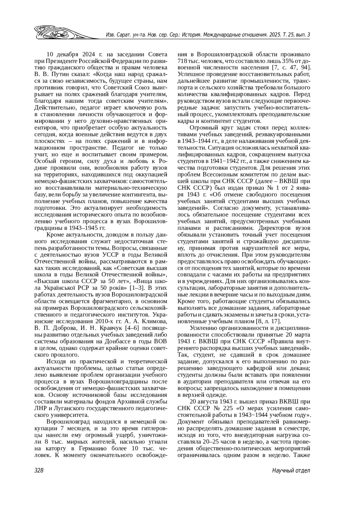 21. Борщевская Н. Накануне учебного года в пединституте // Ворошиловградская правда. 1943. 26 сентября. № 156. С. 4.