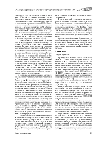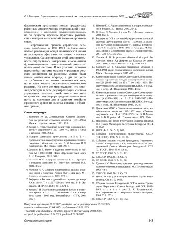 ЕЛИЗАРОВ С. А. РЕФОРМИРОВАНИЕ РЕГИОНАЛЬНОЙ СИСТЕМЫ УПРАВЛЕНИЯ СЕЛЬСКИМ ХОЗЯЙСТВОМ БССР: ПОВОРОТЫ «ВЕЛИКОГО ДЕСЯТИЛЕТИЯ» Н. С. ХРУЩЕВА // ИЗВЕСТИЯ САРАТОВСКОГО УНИВЕРСИТЕТА. НОВАЯ СЕРИЯ. СЕРИЯ: ИСТОРИЯ. МЕЖДУНАРОДНЫЕ ОТНОШЕНИЯ. 2025. Т. 25 № 3