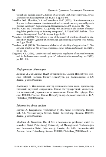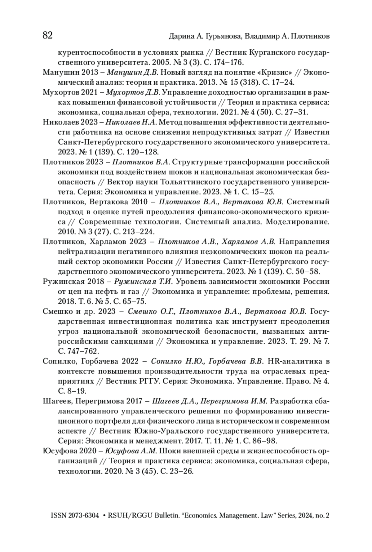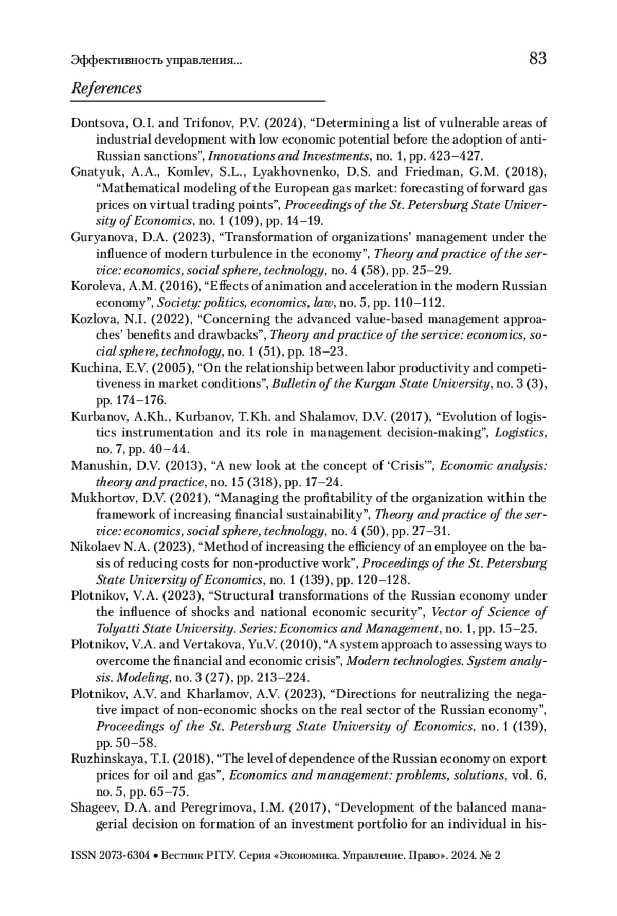 13. Плотников 2023 - Плотников В.А. Структурные трансформации российской экономики под воздействием шоков и национальная экономическая безопасность // Вектор науки Тольяттинского государственного университета. Серия: Экономика и управление. 2023. № 1. С. 15-25.