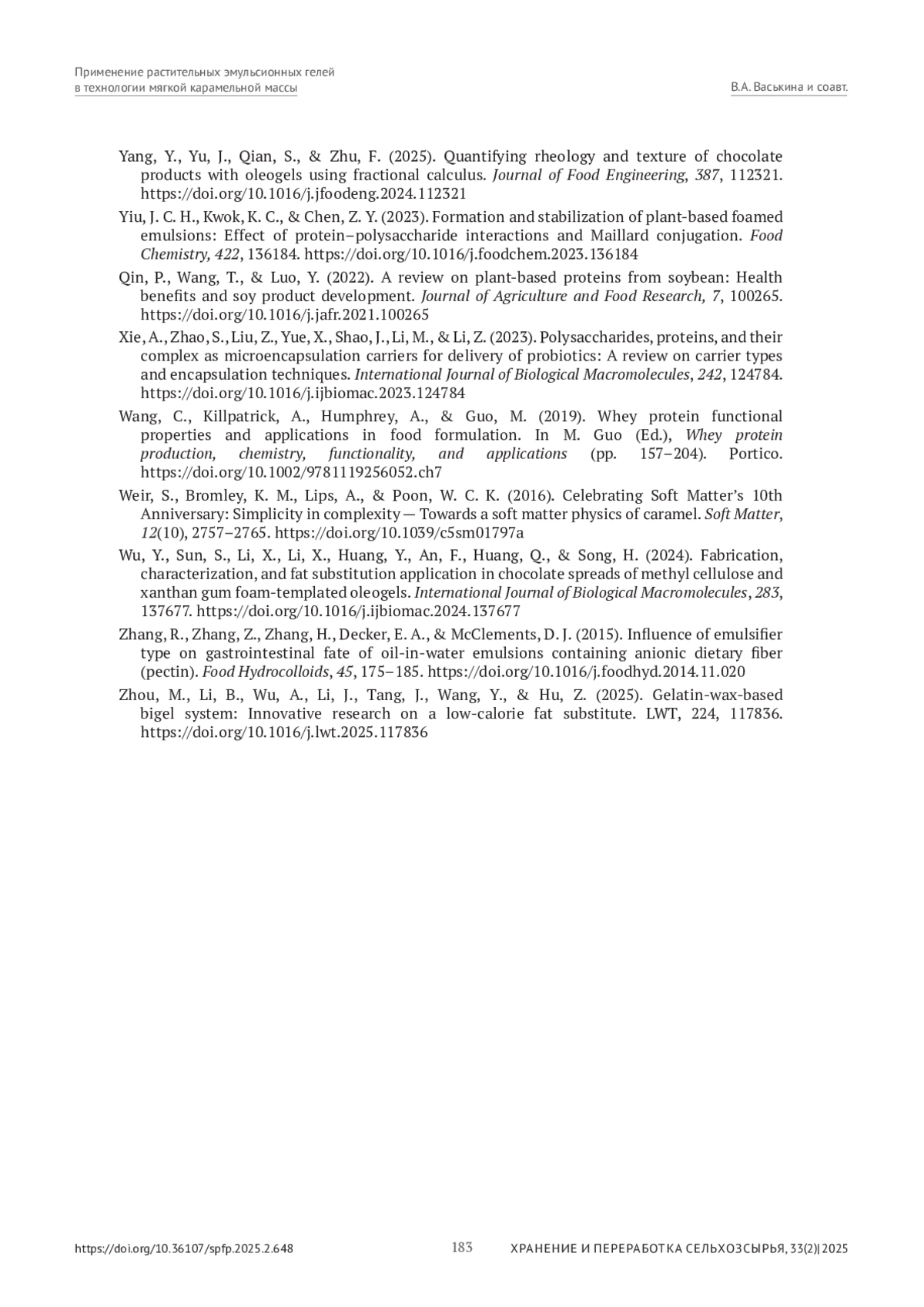 24. Wu, Y., Sun, S., Li, X., Li, X., Huang, Y., An, F., Huang, Q., & Song, H. (2024). Fabrication, characterization, and fat substitution application in chocolate spreads of methyl cellulose and xanthan gum foam-templated oleogels.International Journal of Biological Macromolecules, 283, 137677. DOI: 10.1016/j.ijbiomac.2024.137677 EDN: NFKAPL