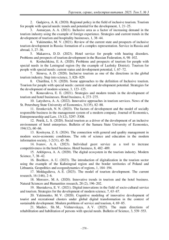 4. Якименко, М. В. Обзор современного состояния и перспективы развития инклюзивного туризма в России: формирование комплексного представления [Текст] / М. В. Якименко // Сервис в России и за рубежом. - 2021. - № 3. - С. 27-36.