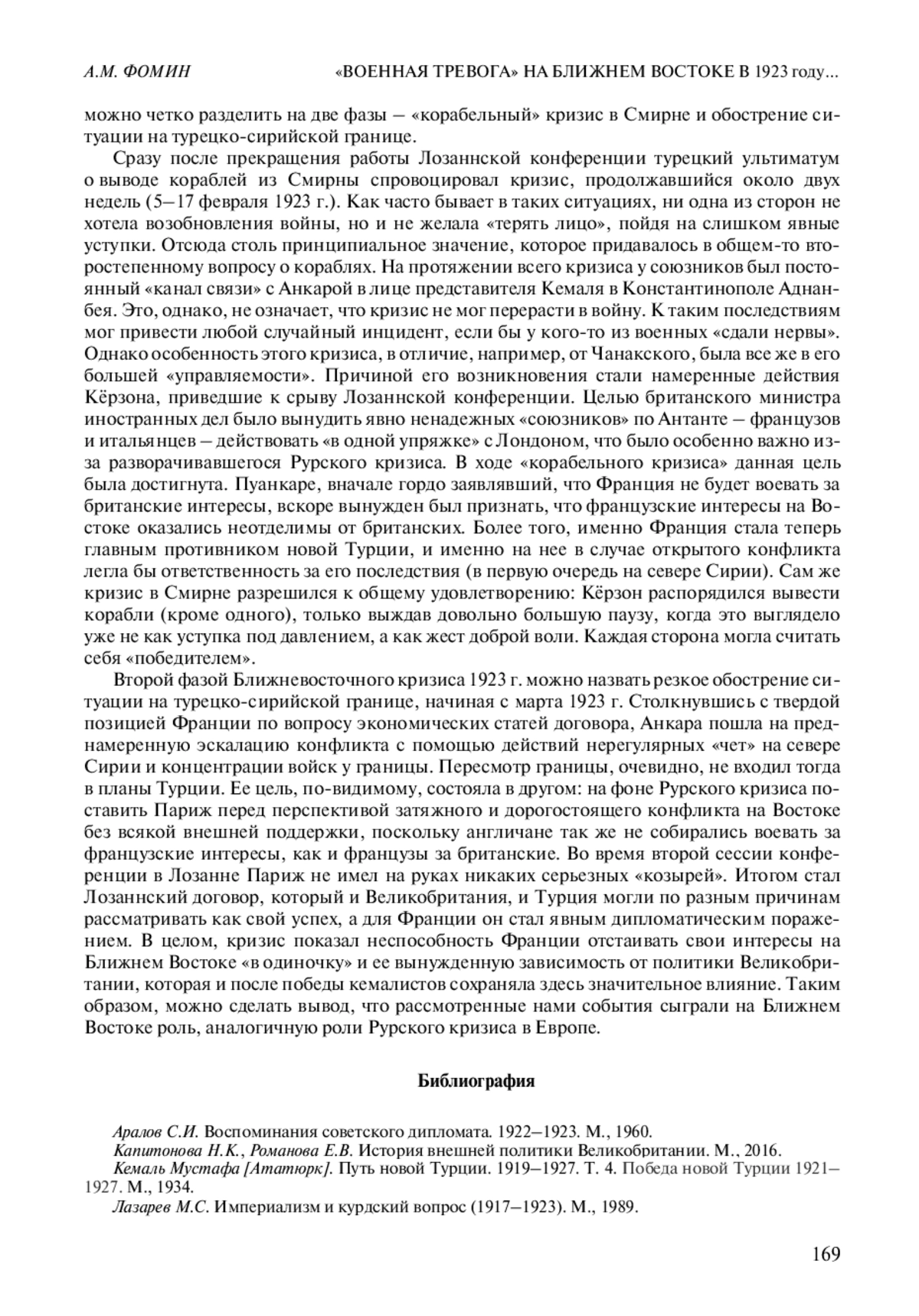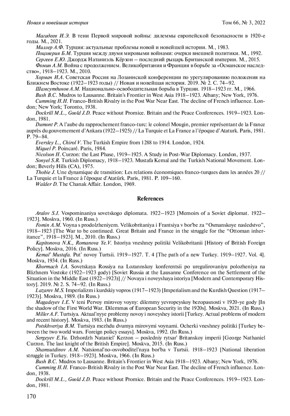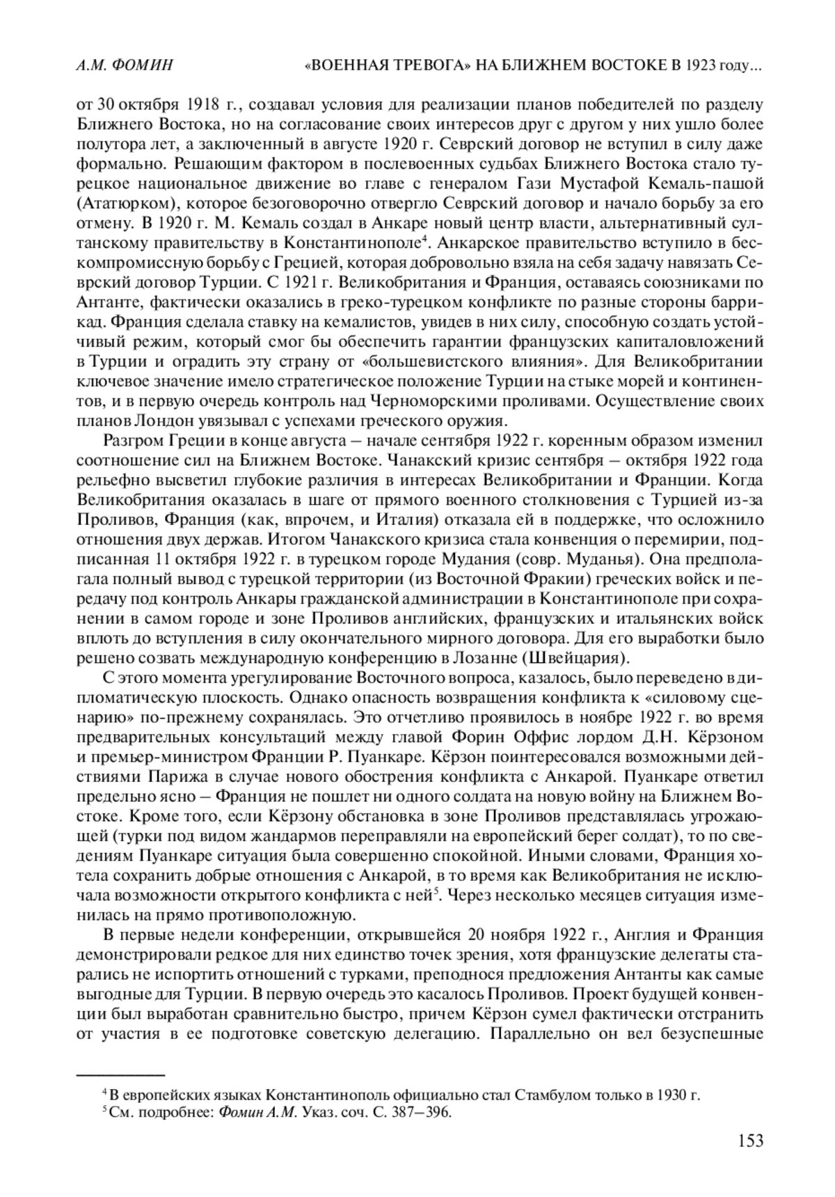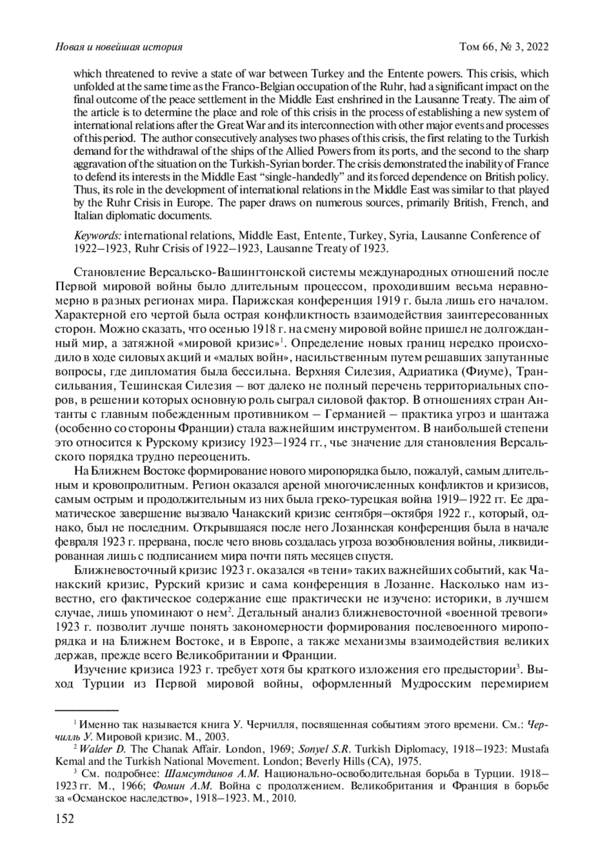 ФОМИН А. М. "ВОЕННАЯ ТРЕВОГА" НА БЛИЖНЕМ ВОСТОКЕ В 1923 ГОДУ: ИСТОРИЯ ЗАБЫТОГО КРИЗИСА // НОВАЯ И НОВЕЙШАЯ ИСТОРИЯ. 2022. № 3