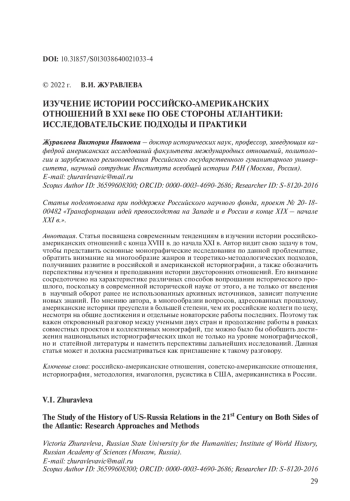 Статья посвящена современным тенденциям в изучении истории российскоамериканских отношений с конца XVIII в. до начала XXI в. Автор видит свою задачу в том, чтобы представить основные монографические исследования по данной проблематике, обратить внимание на многообразие жанров и теоретико-методологических подходов, получивших развитие в российской и американской историографии, а также обозначить перспективы изучения и преподавания истории двусторонних отношений. Его внимание сосредоточено на характеристике различных способов вопрошания исторического прошлого, поскольку в современной исторической науке от этого, а не только от введения в научный оборот ранее не использованных архивных источников, зависит получение новых знаний. По мнению автора, в многообразии вопросов, адресованных прошлому, американские историки преуспели в большей степени, чем их российские коллеги по цеху, несмотря на общие достижения и отдельные новаторские работы последних. Поэтому так важен откровенный разговор между учеными двух стран и продолжение работы в рамках совместных проектов и коллективных монографий, где можно было бы обобщить достижения национальных историографических школ не только на уровне монографической, но и статейной литературы и наметить перспективы дальнейших исследований. Данная статья может и должна рассматриваться как приглашение к такому разговору