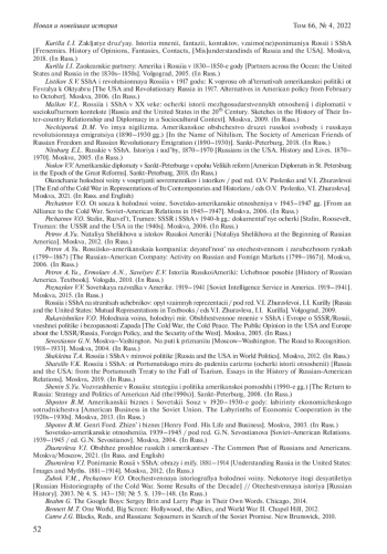 65. Kurilla I.I. Zakljatye druz’yay. Istoriia mnenii, fantazii, kontaktov, vzaimo(ne)ponimaniya Rossii i SShA [Frenemies. History of Opinions, Fantasies, Contacts, [Mis]understandinds of Russia and the USA]. Moskva, 2018. (In Russ.).