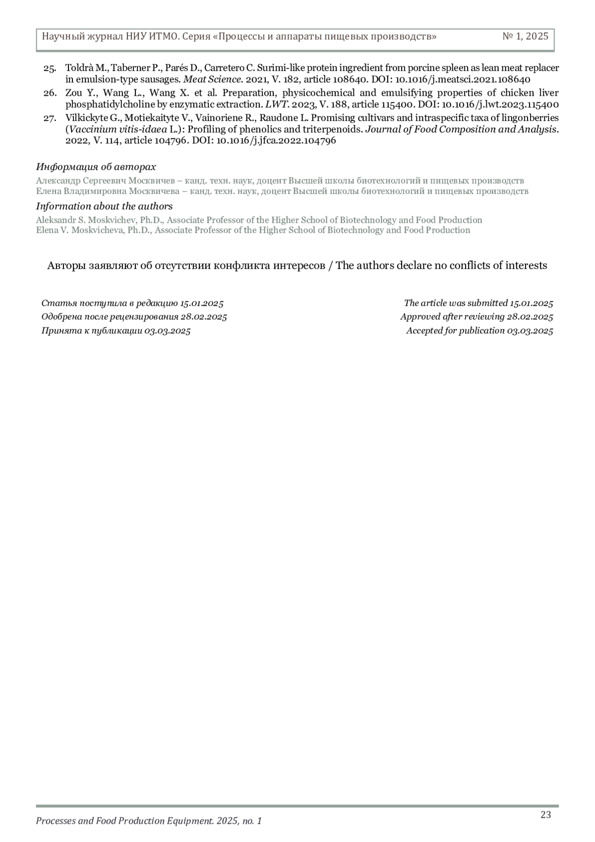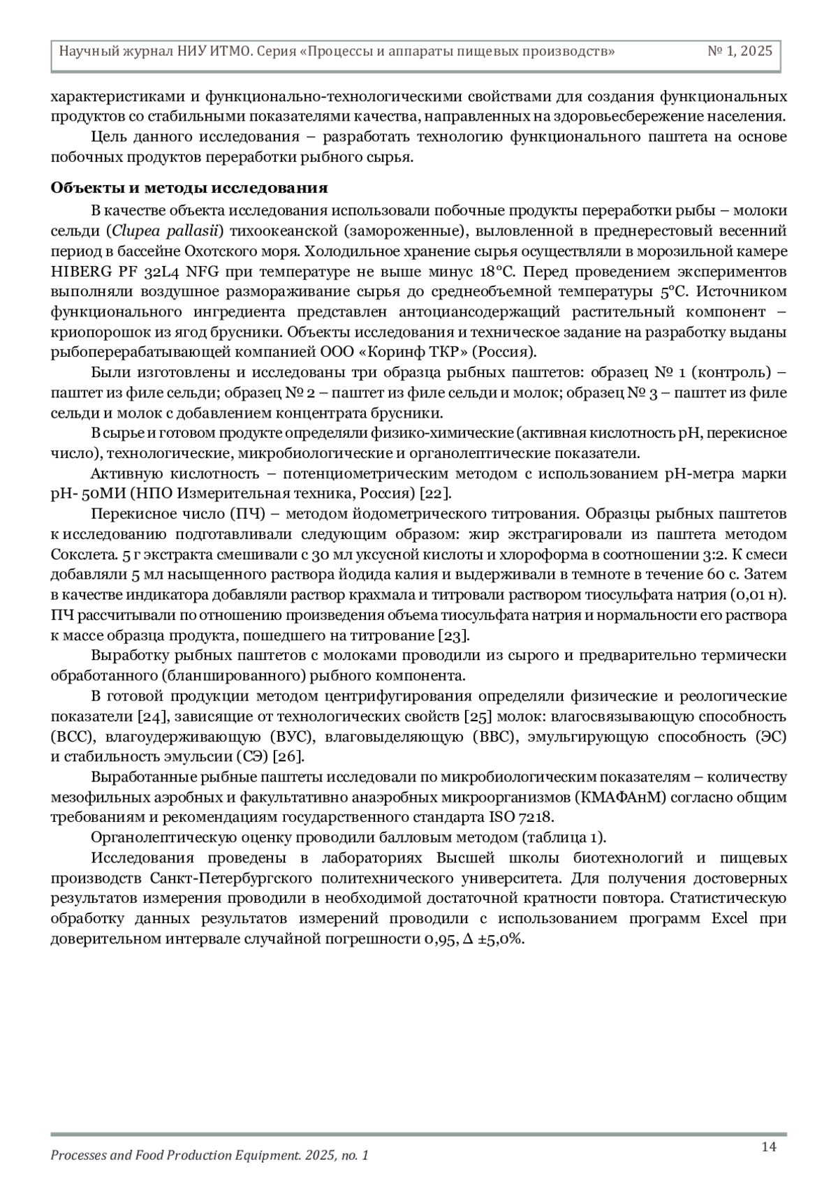 Журнал: НАУЧНЫЙ ЖУРНАЛ НИУ ИТМО. СЕРИЯ: ПРОЦЕССЫ И АППАРАТЫ ПИЩЕВЫХ ПРОИЗВОДСТВ