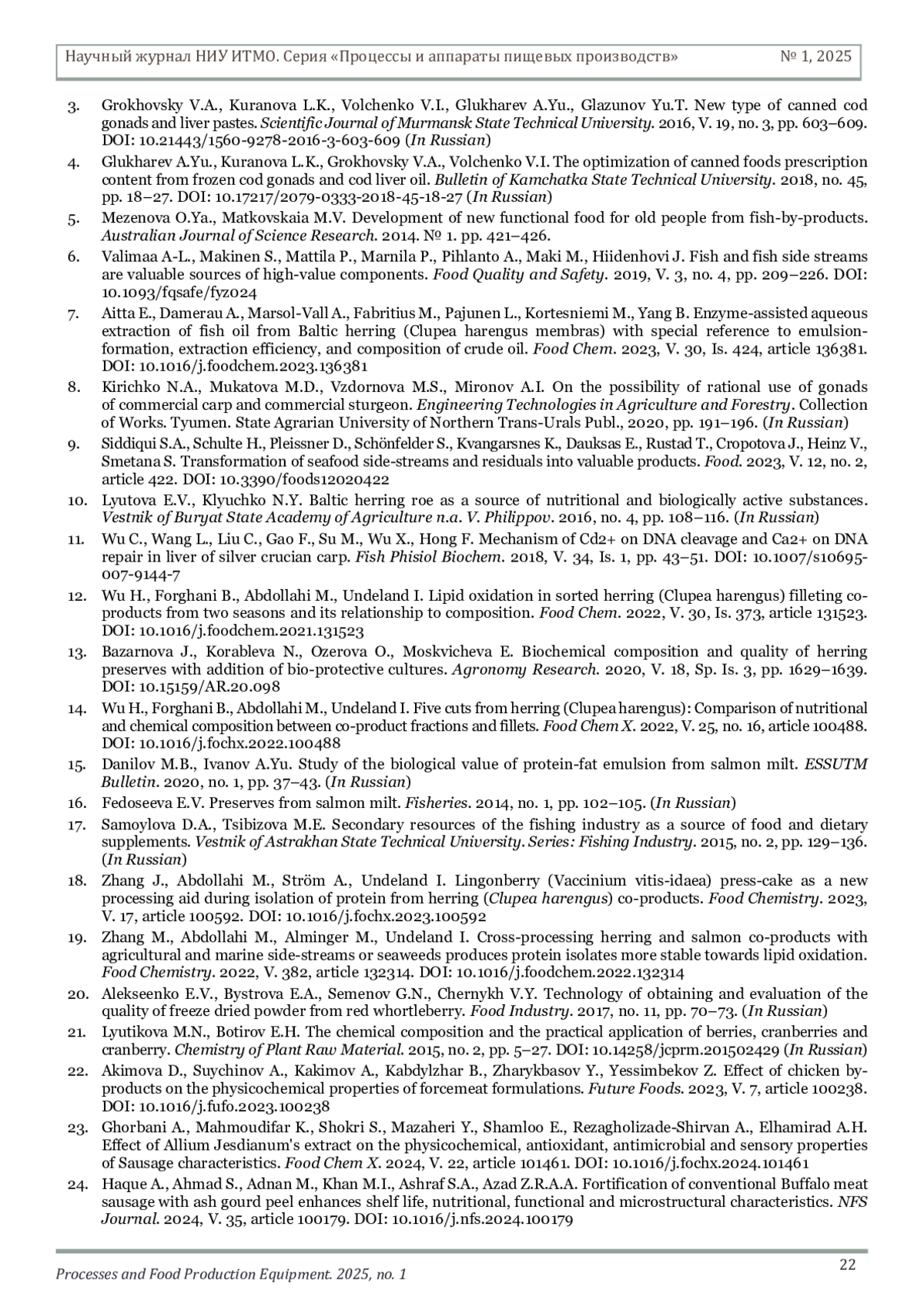 МОСКВИЧЕВ А. С., МОСКВИЧЕВА Е. В. РАЗРАБОТКА ТЕХНОЛОГИИ ФУНКЦИОНАЛЬНОГО ПАШТЕТА НА ОСНОВЕ ПОБОЧНЫХ ПРОДУКТОВ ПЕРЕРАБОТКИ РЫБНОГО СЫРЬЯ // НАУЧНЫЙ ЖУРНАЛ НИУ ИТМО. СЕРИЯ: ПРОЦЕССЫ И АППАРАТЫ ПИЩЕВЫХ ПРОИЗВОДСТВ. 2025. № 1 (63)