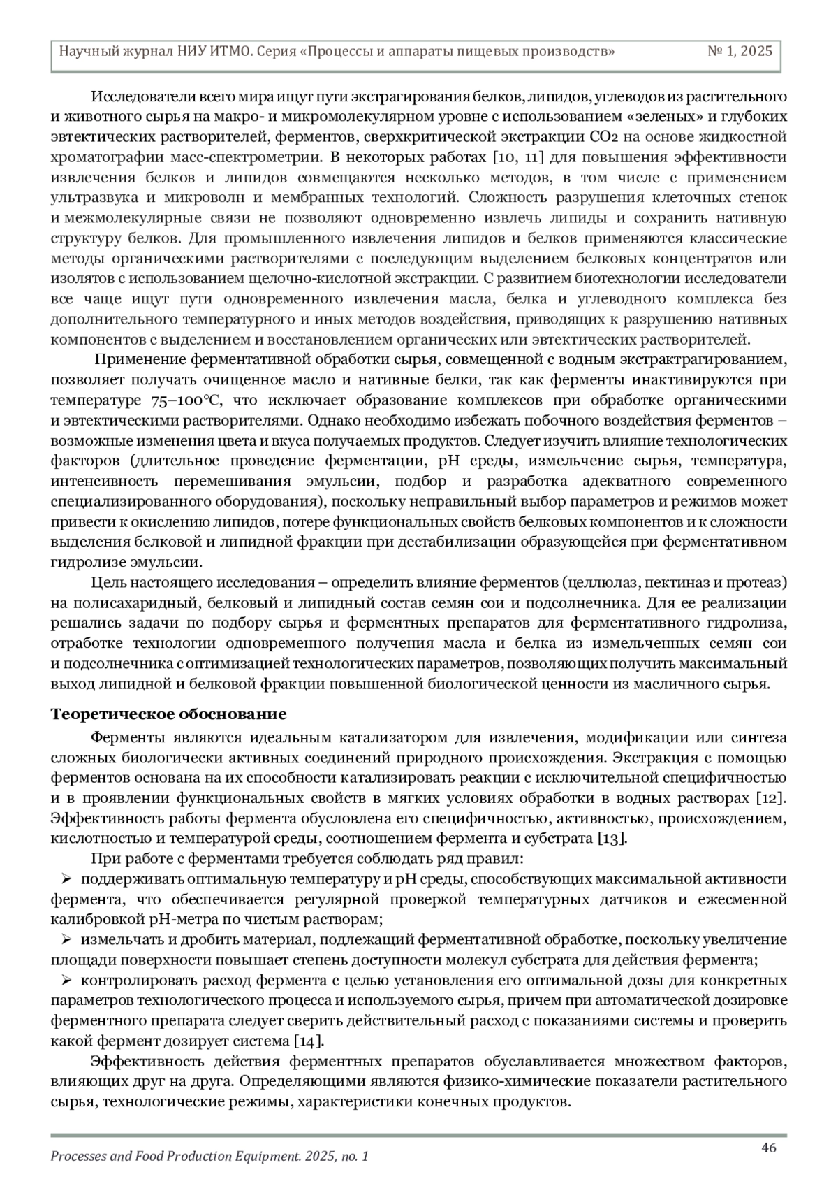 Получение белковой и липидной фракции повышенной биологической ценности из семян масличных с сохранением нативных полезных веществ и функциональных свойств является важной проблемой масложировой промышленности. Одним из вариантов решения данной задачи может стать разработка и внедрение технологий ферментативного гидролиза масличных препаратами гидролаз и протеаз, модифицирующих клеточную структуру масличного сырья и способствующих выходу масла и белка из семян с последующим разделением полученной белково-жировой эмульсии на липидную и протеиновую фракции.