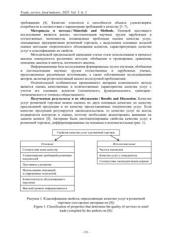 Важным критерием успешности организации и реализации услуг в розничной торговле является качество их исполнения [1]. Чем значительнее данный критерий, тем выше уровень удовлетворенности розничных покупателей спектром сервисных услуг, предоставляемых предприятием, что прямым образом влияет на прирост эффективности оказываемых услуг и повышение конкурентоспособности предприятия на потребительском рынке. Улучшению качества сервисных услуг в розничной торговле сопутствуют: грамотное ресурсное обеспечение, эффективный уровень организации и контроля, высокий уровень использования цифровых технологий [2, 3]. В связи с этим в настоящее время возрастают роль и значение повышения качества услуг в обеспечении эффективности деятельности предприятий различных отраслей, в том числе и розничной торговли, что обусловливает, в свою очередь. проведение дальнейших исследований в этой сфере.