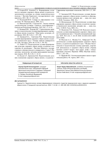 14. Зиновьев Н.А., Святченко П.Б. Педагогические условия формирования здорового образа жизни студентов технического вуза // Ученые записки университета им. П.Ф. Лесгафта. 2016. № 4 (134). С. 98-102. EDN: VVXWXT