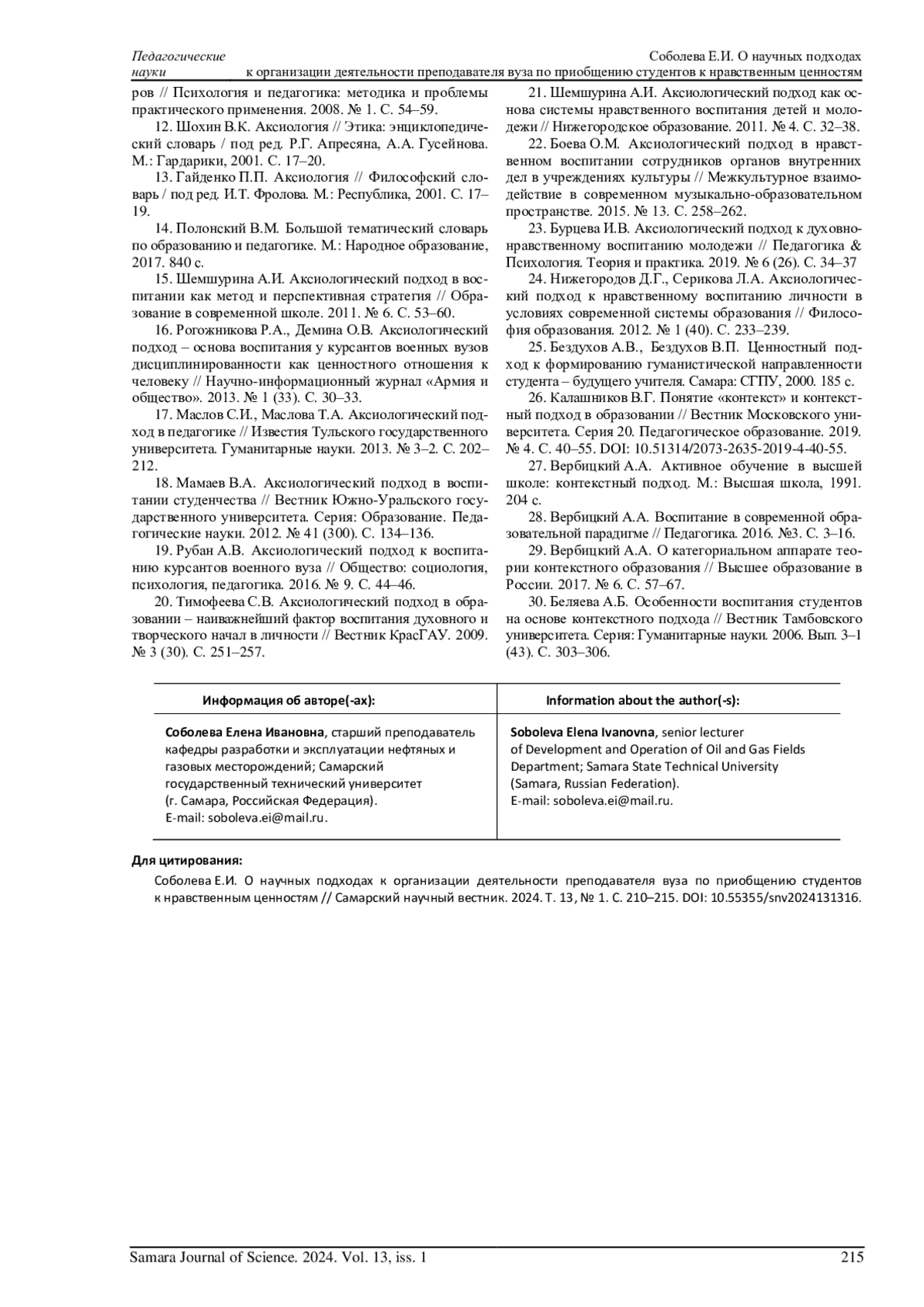 30. Беляева А.Б. Особенности воспитания студентов на основе контекстного подхода // Вестник Тамбовского университета. Серия: Гуманитарные науки. 2006. Вып. 3-1 (43). С. 303-306. EDN: NDEJRD