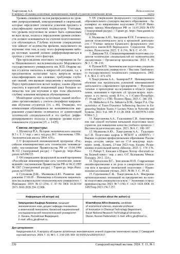 7. Давыдова Т.Е. Специализированная подготовка студентов технических специальностей по экономическим дисциплинам // Организатор производства. 2022. Т. 30, № 3. С. 98-110. EDN: YPZUUW