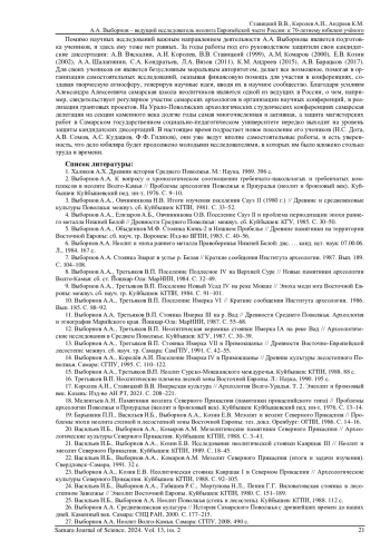 12. Выборнов А.А., Третьяков В.П. Неолитическая керамика стоянки Имерка IА на реке Вад // Археологические исследования в Среднем Поволжье. Куйбышев: КГУ, 1987. С. 30-39.
