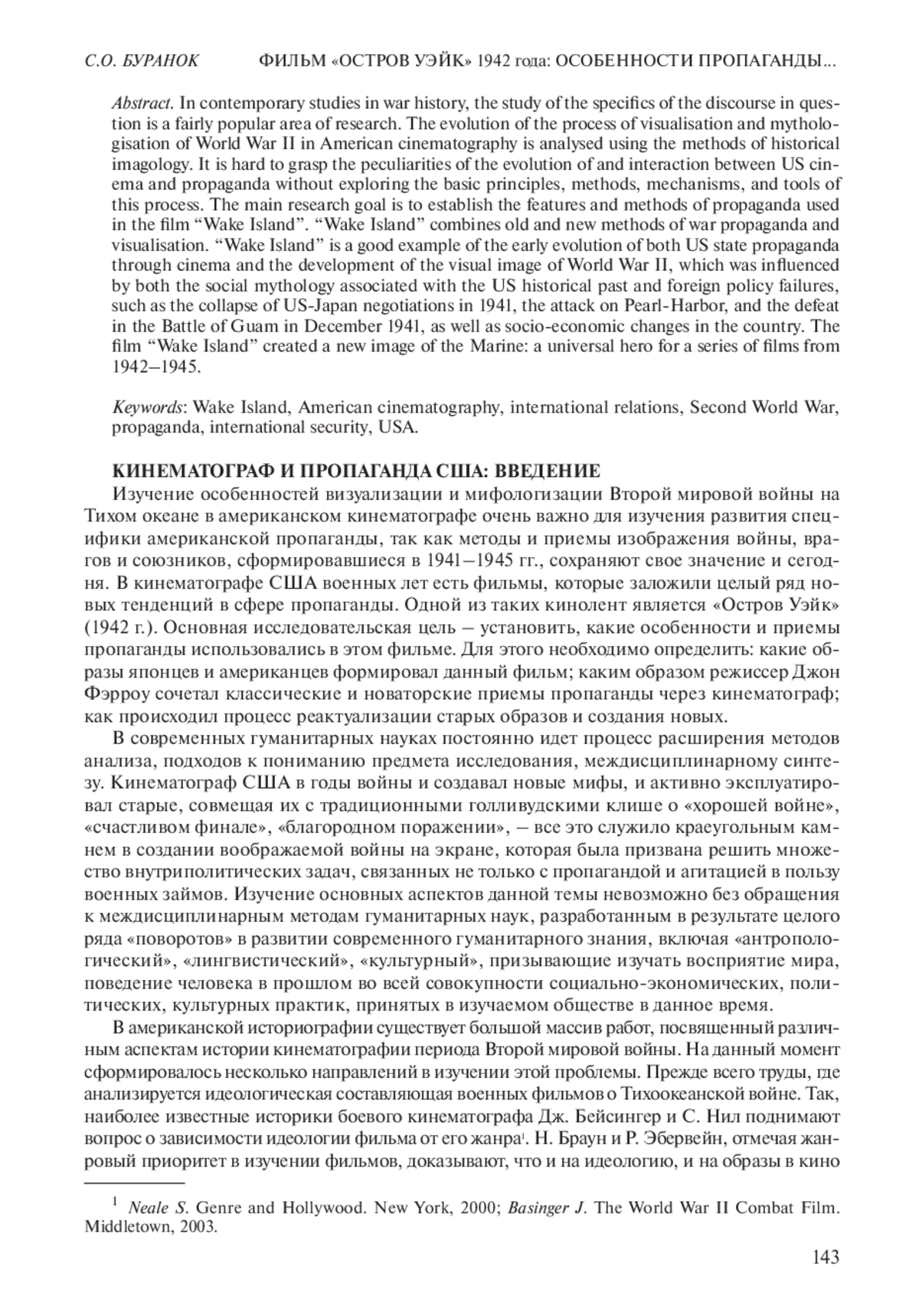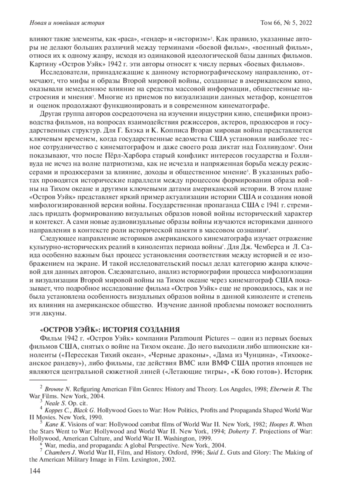 БУРАНОК С. О. ФИЛЬМ "ОСТРОВ УЭЙК" 1942 ГОДА: ОСОБЕННОСТИ ПРОПАГАНДЫ И ВИЗУАЛИЗАЦИИ ВТОРОЙ МИРОВОЙ ВОЙНЫ В США // НОВАЯ И НОВЕЙШАЯ ИСТОРИЯ. 2022. № 5