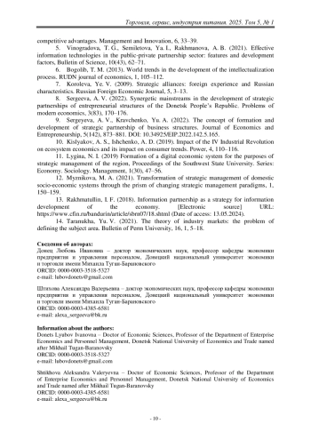 12. Мызникова, М. А. Трансформация стратегического управления отечественных социально-экономических систем через призму смены парадигм стратегического управления [Текст] / М. А. Мызникова // Вестник Донецкого национального университета. Серия В. Экономика и право. – 2021. – № 1. – С. 150–159.