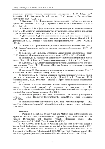 22. Пирская, Е. В. Особенности современного маркетинга предприятий малого бизнеса [Текст] / Е. В. Пирская // Современная экономика. – 2019. – № 6. – С. 54–62.