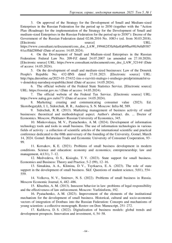 16. Пятаченко, А. М. Усовершенствование элементов институционального механизма развития малого бизнеса [Текст] // Исторические, культурные и социально- экономические векторы интеграции Донбасса в Российскую Федерацию: Концепции и механизмы молодых ученых: коллективная монография / Б. Ю. Байда. В. О. Бессарабов, Л. Н. Браганцева [и др.]; под ред. Е. М. Азарян. – Ростов-на-Дону: Манускрипт, 2023. – С. 251–272.