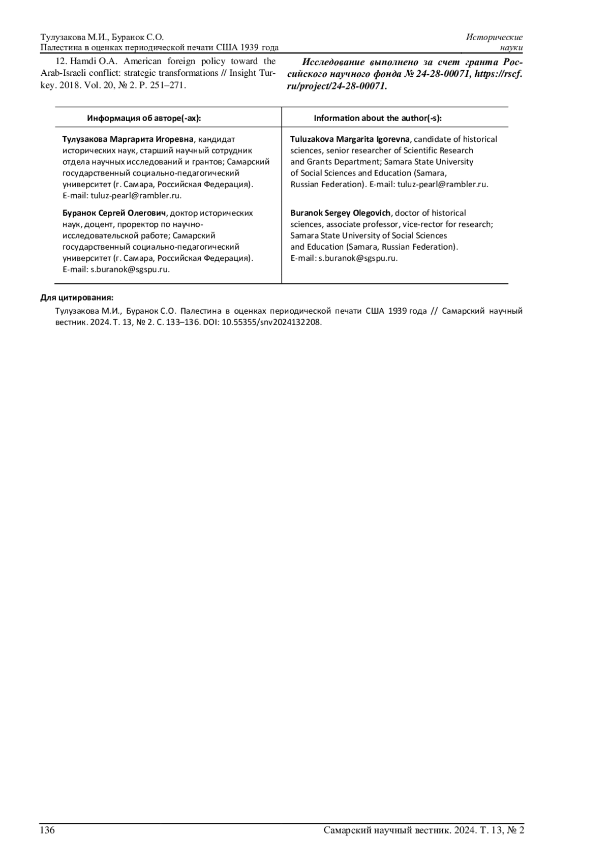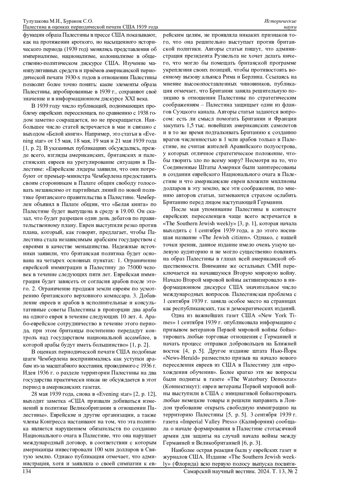 9. Тулузакова М.И., Буранок С.О. Иммиграционный кризис в Палестине (1933-1936) в отражении периодической печати США // Научный диалог. 2024. Т. 13, № 6. С. 515-531. DOI: 10.24224/2227-1295-2024-13-6-515-531 EDN: KGWZIC