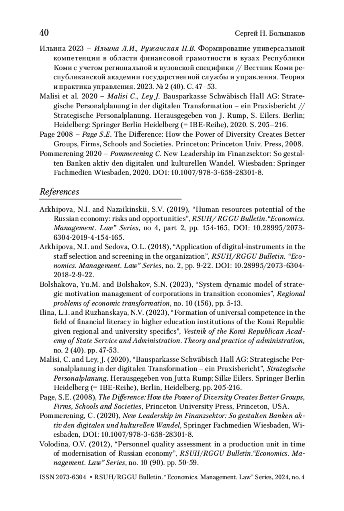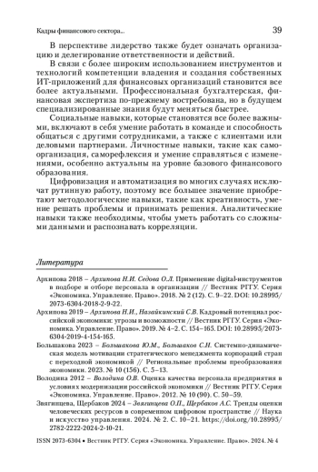 2. Архипова 2019 - Архипова Н.И., Назайкинский С.В. Кадровый потенциал российской экономики: угрозы и возможности // Вестник РГГУ. Серия «Экономика. Управление. Право». 2019. № 4-2. С. 154-165. https://doi.org/10.28995/2073-6304-2019-4-154-165.