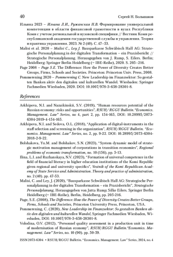 6. Ильина 2023 - Ильина Л.И., Ружанская Н.В. Формирование универсальной компетенции в области финансовой грамотности в вузах Республики Коми с учетом региональной и вузовской специфики // Вестник Коми республиканской академии государственной службы и управления. Теория и практика управления. 2023. № 2 (40). С. 47-53.