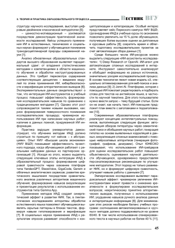 13. Ерофеева М. А. К вопросу об использовании искусственного интеллекта в научно-исследовательской деятельности обучающихся (адъюнктов / аспирантов, студентов) / М. А. Ерофеева, М. Ю. Кузнецов, Б. Р. Кодиров // Вестник Воронежского государственного университета. Серия: Проблемы высшего образования. - 2024. - № 3. - С. 19-22. EDN: EOTZBB