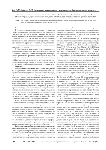 Статья: Ценностная спецификация в личностно-профессиональной мотивации сотрудников правоохранительных органов (2025)