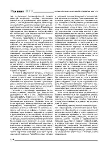 Представлена рецензия на учебное пособие, посвященное исследованиям в области бионанотехнологии, направленным на создание наноструктур и наноматериалов для их биомедицинского применения.
