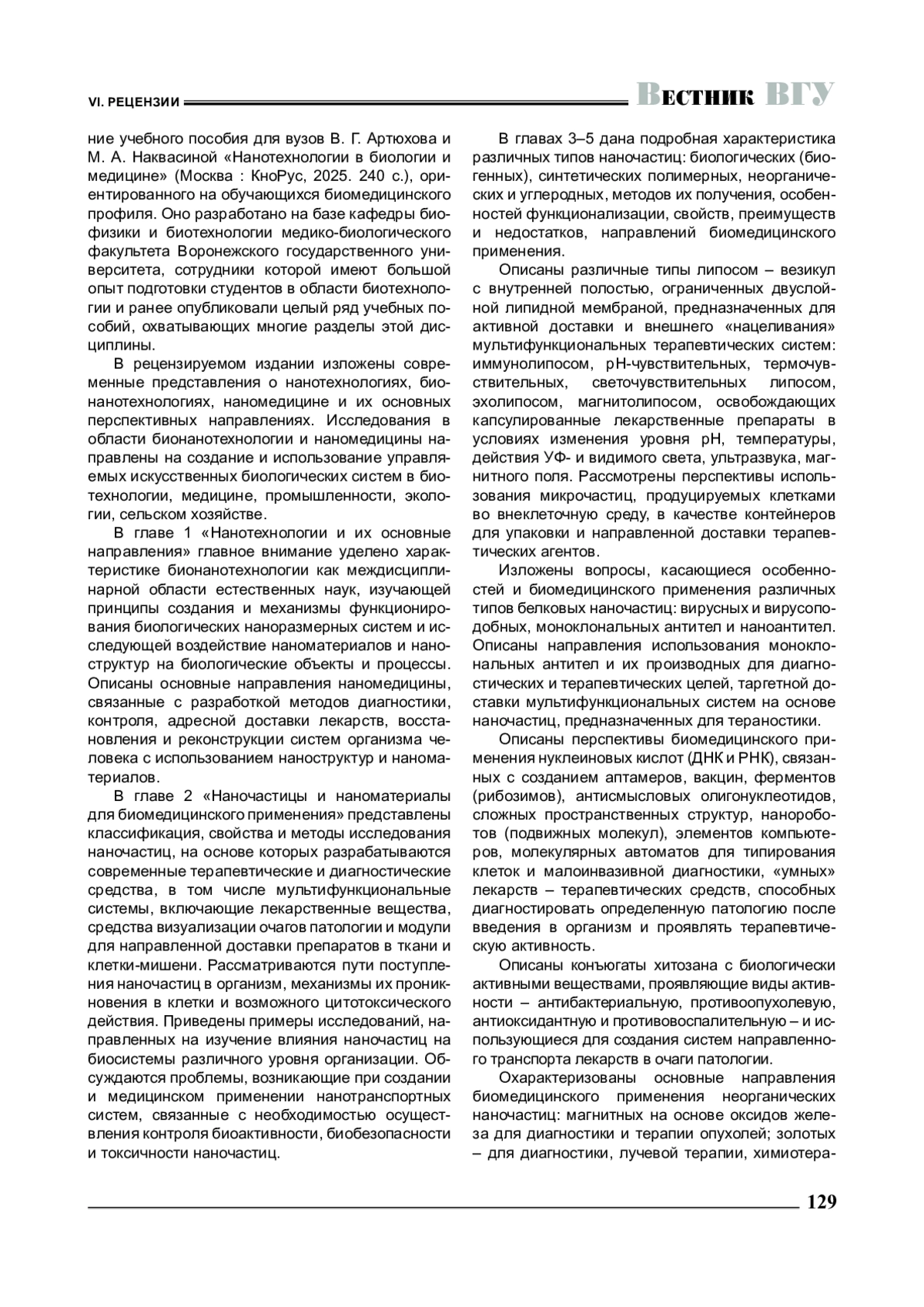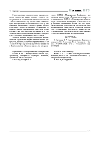 1. Артюхов В. Г. Нанотехнологии в биологии и медицине / В. Г. Артюхов, М. А. Наквасина. - Москва: КНОРУС, 2025. - 240 с. - (Специалитет и ординатура)