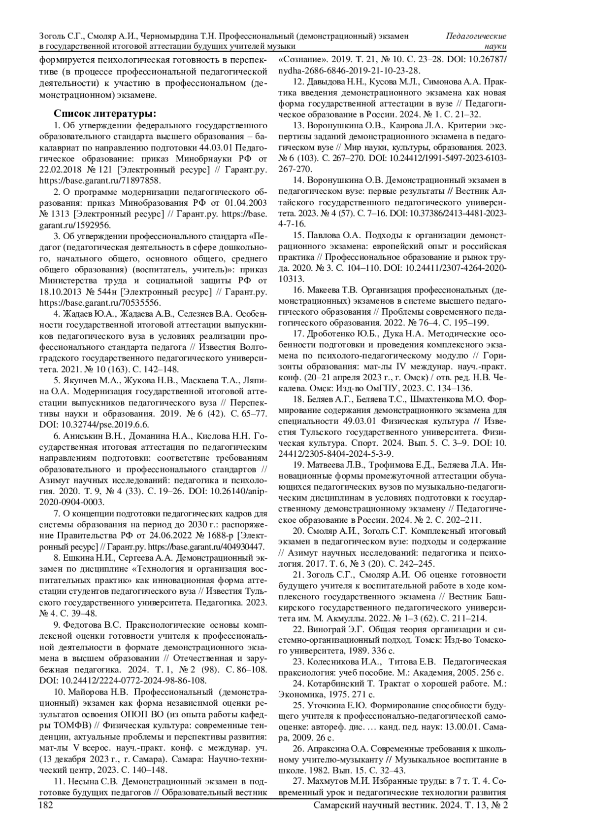 12. Давыдова Н.Н., Кусова М.Л., Симонова А.А. Практика введения демонстрационного экзамена как новая форма государственной аттестации в вузе // Педагогическое образование в России. 2024. № 1. С. 21-32. EDN: SWYACV