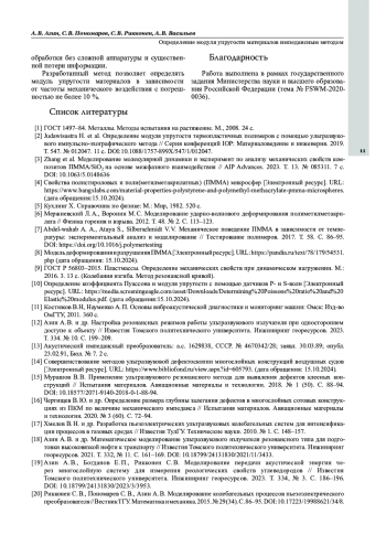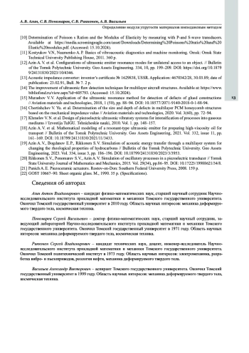 Ключевые фразы: НЕРАЗРУШАЮЩИЙ КОНТРОЛЬ, модуль упругости, импедансный метод, ультразвуковой излучатель
