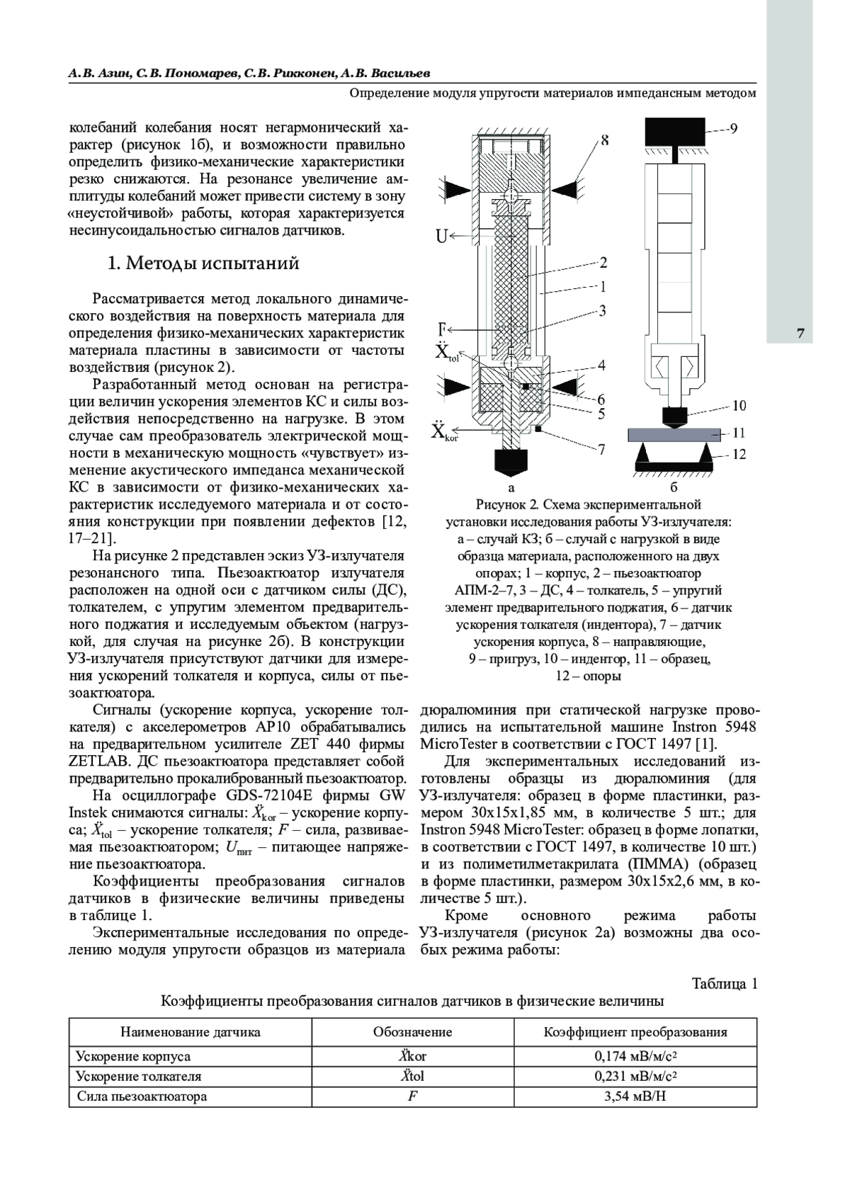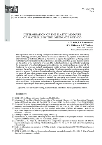 Статья: ОПРЕДЕЛЕНИЕ МОДУЛЯ УПРУГОСТИ МАТЕРИАЛОВ ИМПЕДАНСНЫМ МЕТОДОМ (2025)