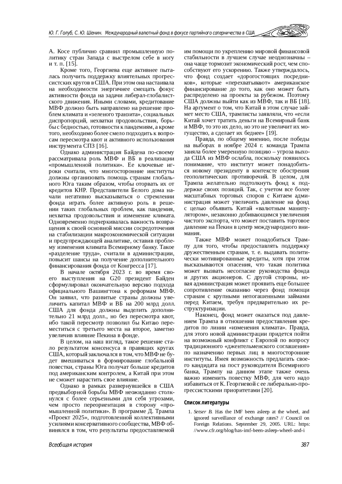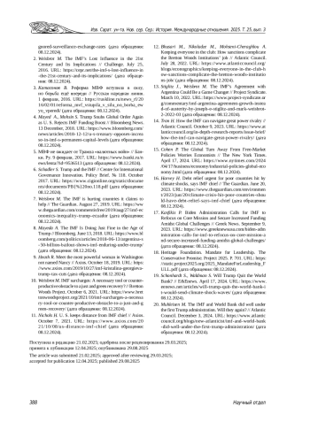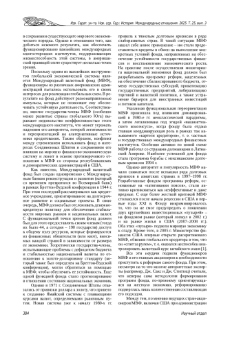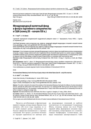 ГОЛУБ Ю. Г., ШЕНИН С. Ю. МЕЖДУНАРОДНЫЙ ВАЛЮТНЫЙ ФОНД В ФОКУСЕ ПАРТИЙНОГО СОПЕРНИЧЕСТВА В США (КОНЕЦ XX - НАЧАЛО XXI В.) // ИЗВЕСТИЯ САРАТОВСКОГО УНИВЕРСИТЕТА. НОВАЯ СЕРИЯ. СЕРИЯ: ИСТОРИЯ. МЕЖДУНАРОДНЫЕ ОТНОШЕНИЯ. 2025. Т. 25 № 3