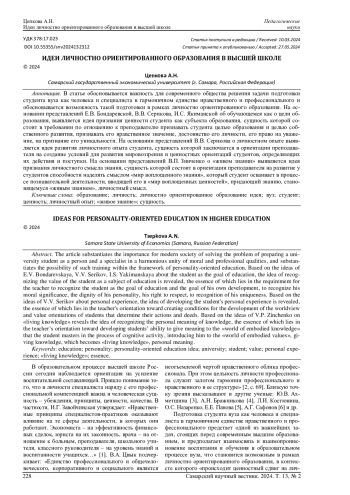 Статья: ИДЕИ ЛИЧНОСТНО ОРИЕНТИРОВАННОГО ОБРАЗОВАНИЯ В ВЫСШЕЙ ШКОЛЕ (2024)