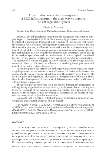 4. Ворова 2019 - Ворова Е.А. Анализ опыта внедрения саморегулирования в строительной области России // Финансовая экономика. 2019. № 3. С. 724-726.