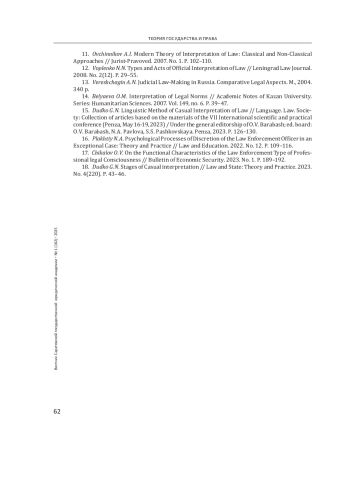 18. Дудко Г. Н. Стадии казуального толкования // Право и государство: теория и практика. 2023. № 4(220). С. 43-46.