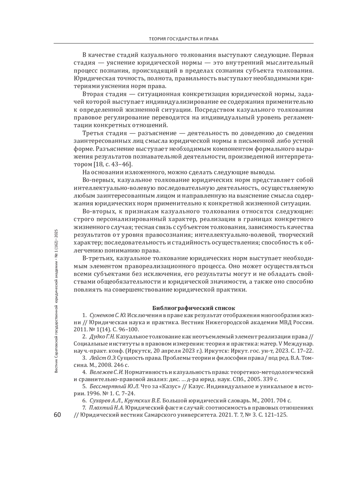 2. Дудко Г. Н. Казуальное толкование как неотъемлемый элемент реализации права // Социальные институты в правовом измерении: теория и практика: матер. V Междунар. науч.-практ. конф. (Иркутск, 20 апреля 2023 г.). Иркутск: Иркут. гос. ун-т, 2023. С. 17-22. EDN: ZXSDAA