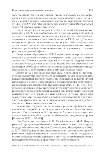 Статья: Регистрация перехода прав собственности на недвижимое имущество: проблемы и перспективы (2025)