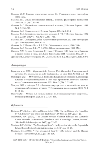 4. Межуев 2021 - Межуев Б.В. «Смысл войны» Вл. Соловьева и русское общество // Вопросы философии. 2021. № 2. С. 126-136.