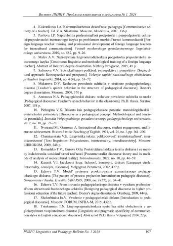 8. Макарова, Д.В. Речевое поведение учителя в структуре педагогического дискурса: дис. … д-ра пед. наук / Д.В. Макарова. - М., 2009. - 370 с. EDN: QELNIH