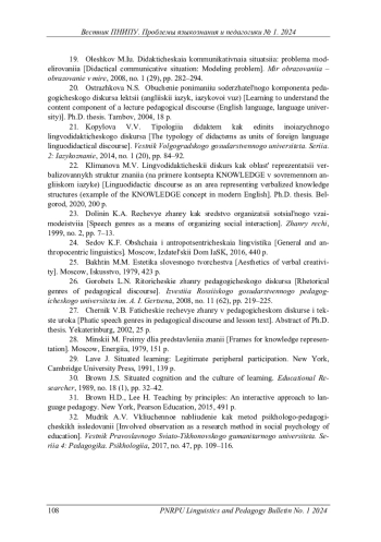 19. Олешков, М.Ю. Дидактическая коммуникативная ситуация: проблема моделирования / М.Ю. Олешков // Мир образования - образование в мире. - 2008. - № 1(29). - С. 282-294. EDN: ISHTHF