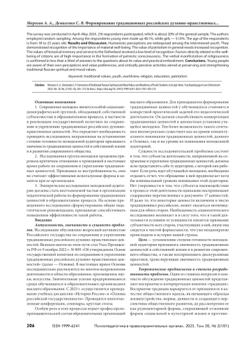 Статья: Формирование традиционных российских духовно-нравственных ценностей и готовность учащейся молодежи к их восприятию (2025)