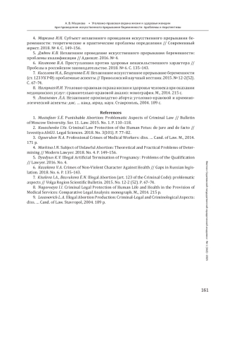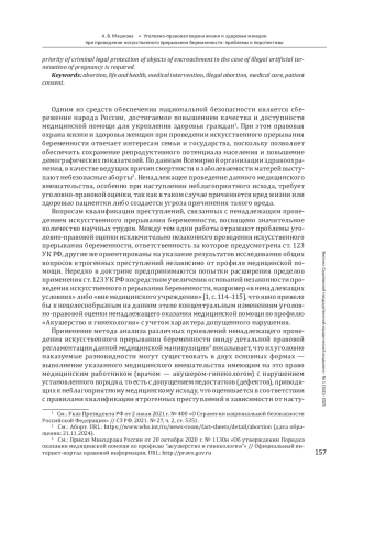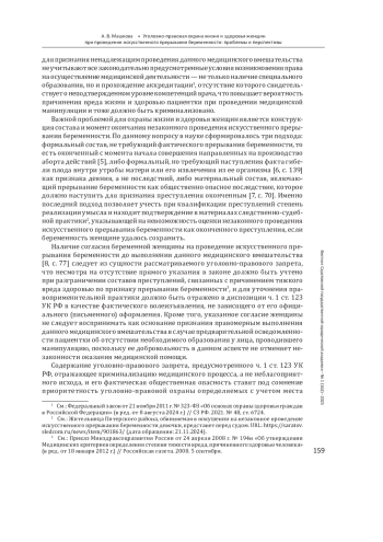 МАШКОВА А. В. УГОЛОВНО-ПРАВОВАЯ ОХРАНА ЖИЗНИ И ЗДОРОВЬЯ ЖЕНЩИН ПРИ ПРОВЕДЕНИИ ИСКУССТВЕННОГО ПРЕРЫВАНИЯ БЕРЕМЕННОСТИ: ПРОБЛЕМЫ И ПЕРСПЕКТИВЫ // ВЕСТНИК САРАТОВСКОЙ ГОСУДАРСТВЕННОЙ ЮРИДИЧЕСКОЙ АКАДЕМИИ. 2025. № 1 (162)