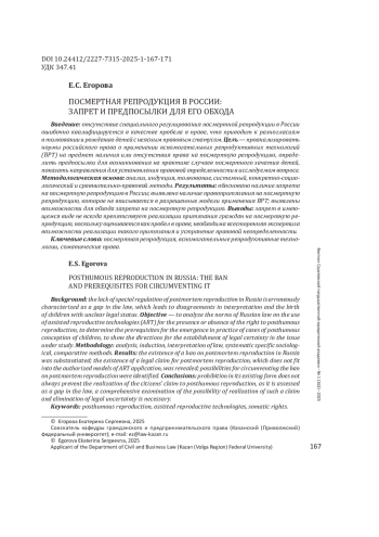 Статья: ПОСМЕРТНАЯ РЕПРОДУКЦИЯ В РОССИИ: ЗАПРЕТ И ПРЕДПОСЫЛКИ ДЛЯ ЕГО ОБХОДА (2025)