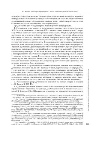 ЕГОРОВА Е. С. ПОСМЕРТНАЯ РЕПРОДУКЦИЯ В РОССИИ: ЗАПРЕТ И ПРЕДПОСЫЛКИ ДЛЯ ЕГО ОБХОДА // ВЕСТНИК САРАТОВСКОЙ ГОСУДАРСТВЕННОЙ ЮРИДИЧЕСКОЙ АКАДЕМИИ. 2025. № 1 (162)