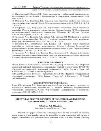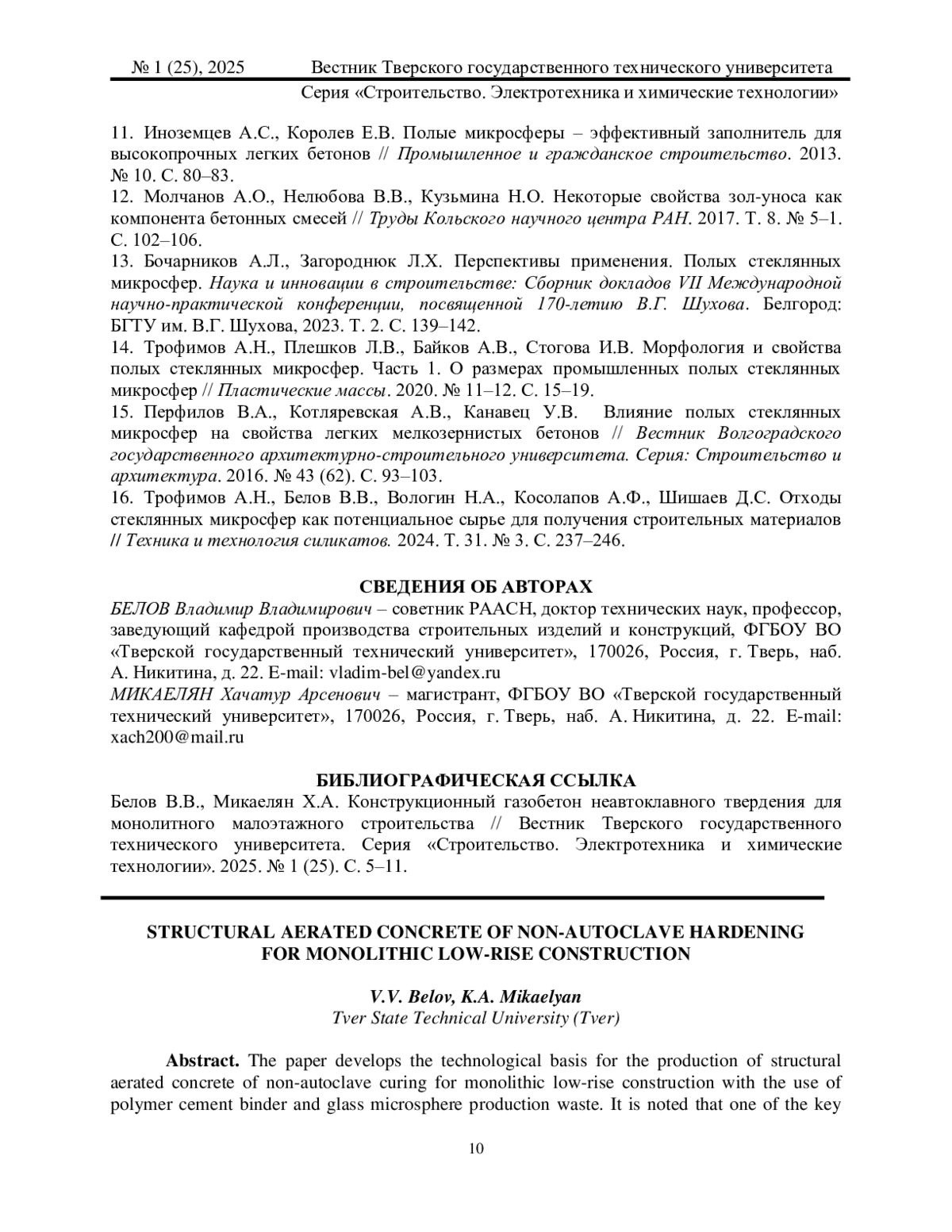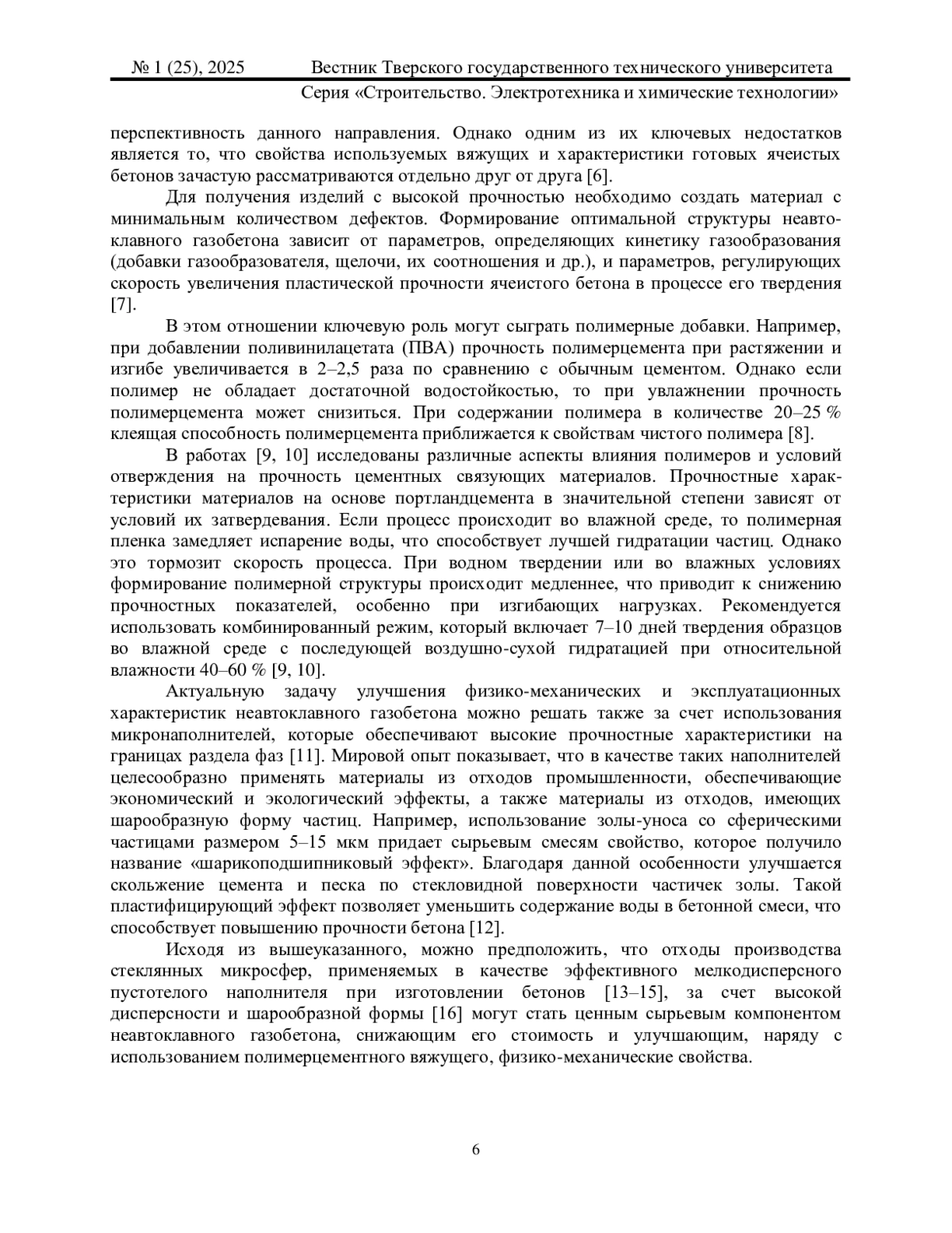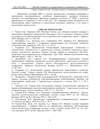 16. Трофимов А.Н., Белов В.В., Вологин Н.А., Косолапов А.Ф., Шишаев Д.С. Отходы стеклянных микросфер как потенциальное сырье для получения строительных материалов // Техника и технология силикатов. 2024. Т. 31. № 3. С. 237-246. EDN: VKZIBD